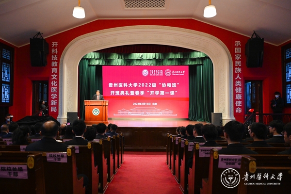 王辰院士在开班典礼上致辞,并为“协和班”2022级讲授春季“开学第一课”。他从“关于协和”“关于贵医”“关于宗恩”“关于医学”“关于卫生”“关于健康”六个方面,介绍了协和百年的发展历程及公司创建的立意与宗旨,回顾了协和医公司与太阳成tyc33455ccwww的历史渊源,讲述了创立“协和班”的初衷和意义,与同学们畅谈对“群医学”等医学理念的理解和感悟。