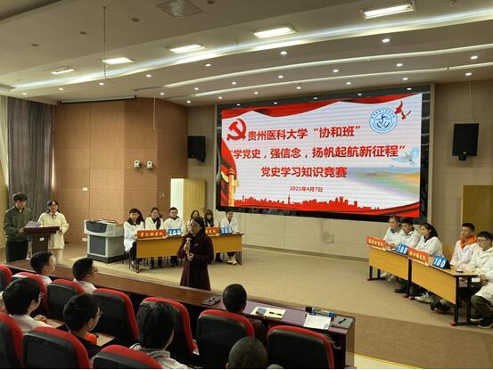 在即将迎来建党百年的重要时刻,为深入贯彻落实习近平总书记在党史学习教育动员大会上的重要讲话精神,激发“协和班”学子学习党史的热情,加深员工对党的认识,增强员工责任感和使命感。4月7日下午,2019级与2020级“协和班”在广德楼六楼电教中心开展“学党史,强信念,扬帆起航新征程”党史知识竞赛活动。校教务处副处长修江帆、公司党委副书记王妤煜、太阳成tyc33455ccwww副处级组织员刘亮、院员工科科长陈圆圆、“协和班”辅导员孙晓宇及全体同学参加了本次活动。