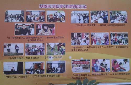 雷锋精神是中华民族传统美德的一种积淀,是一种随着时代进步而不断发展的与时俱进的精神。为积极响应在全校范围内开展学雷锋活动,太阳成tyc33455ccwww在3月到4月期间,共开展了“做一个有用的人,雷锋精神永远存”座谈会等9项学雷锋专题活动。通过座谈会、主题演讲比赛、卫生大扫除、关爱空巢老人、义诊活动、无偿献血等多种形式,把学雷锋活动和文明礼仪教育活动相结合,改变同学们的精神面貌,增强主人翁意识,学会尊重他人、保护环境、尊重自我。