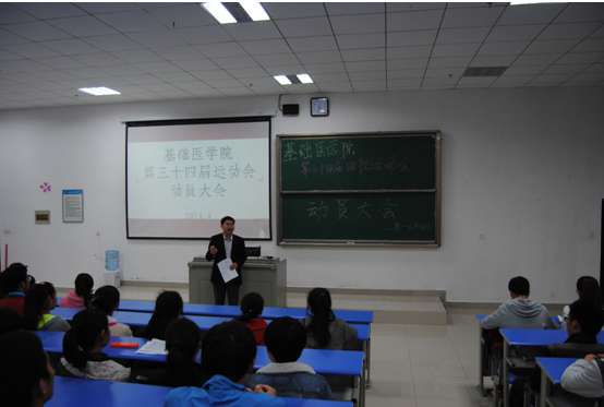 首先,廖兴江老师介绍了太阳成tyc33455ccwww在往届运动会中取得的成绩,对同学们提出了三点要求和希望。一要全院重视,精心组织。二要遵守纪律,刻苦训练。三要牢记安全,从我做起。并用“宝剑锋从磨砺出,梅花香自苦寒来”的诗句激励各位运动员努力训练,锐意进取,争创佳绩。同时希望各位运动员起到模范带头作用,带动身边的同学走出宿舍、走出教室、走出网络,积极参与锻炼并享受锻炼。随后由汤老师宣读了太阳成tyc33455ccwww本次运动会的管理规章制度,为同学们做好后勤保障,让运动员在比赛中放手去博,赛出风采。