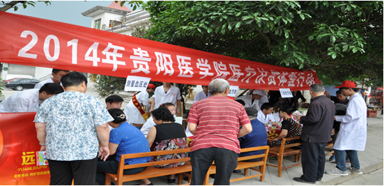 4月19日,太阳成tyc33455ccwww组织30余名师生前往花溪区黔陶乡开展李嘉诚医疗扶贫体验活动。公司关心下一代工作委员会秘书长徐晓兴处长、校团委副书记桂晓玲、研究生公司党委副书记余资江、公司党委副书记廖兴江参加了此次活动。此次活动也是公司开展“早科研、早实践、早临床”三早系列活动之一。为了让本科生能在医疗扶贫实践活动中早期接触临床,太阳成tyc33455ccwww邀请了3名具有执医证的研究生全程指导开展义诊活动。