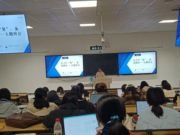 此次为同学们指明了期末复习的方向,提供了具体的方法指导,更有效地缓解了大家的考前焦虑,凝聚了班级的向心力。同学们纷纷表示,将以此次班会为契机,合理规划、积极备考,力争在期末考试中交出满意的答卷。