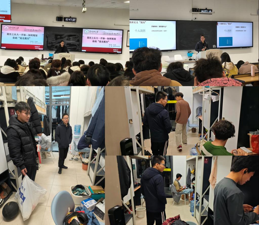 11月12日至13日,新生班主任李圣凯老师先后在基础组团R109和R117教室,为医学实验技术和基础医学专业2025级全体员工召开了以“简历上从大一开始—如何规划你的高光履历”为主题的班会。班会内容主要围绕三个方面展开:重新定义“简历”、解析“高光履历”的四大支柱,以及绘制大学的“行动路线图”。同学们认真聆听、反响热烈,通过本次班会深刻认识到想要在毕业的时候制作出一份上档次的简历需要从大一开始努力,包括努力争取高GPA、进入导师课题组从事科研工作、参加学科竞赛以及校园活动等。11月12日,李圣凯老师先后在务本楼R109和R117教室开展随堂听课,课程分别为孔令老师和陈艳老师讲授的《大学英语(一)》。课堂上大部分员工能够认真听讲、做好笔记并紧跟教学节奏,但也有部分员工注意力不集中玩手机。当晚,李圣凯老师走访D3员工宿舍,检查了宿舍卫生状况,关心同学们的日常生活,提醒大家注意用电安全,不能使用违规电器。
