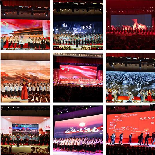 从情景剧《风雪长征路》到舞蹈《理想照耀中国》,从朗诵《赞美党的诗歌》到原创诗词《新时代最可爱的贵医人》,掀开了气势恢宏的历史画卷,演绎着催人奋进的壮丽史诗,唤起了大家慷慨报国的凌云壮志, 赢得了现场观众的热烈掌声。《黄河大合唱》《在灿烂的阳光下》《没有共产党就没有新中国》《我们走在大路上》《国家》《歌唱祖国》《不忘初心》《党旗飘扬的方向》等一首首激情澎湃、气势磅礴的红色歌曲,嘹亮优美的颂唱、整齐划一的队形、庄重严肃的表演是青年团员们一颗红心向党的真实写照,唱响了红色主旋律,不仅是一场音乐盛宴,更是一次红色教育大课堂,让党史学习教育“声”入人心。