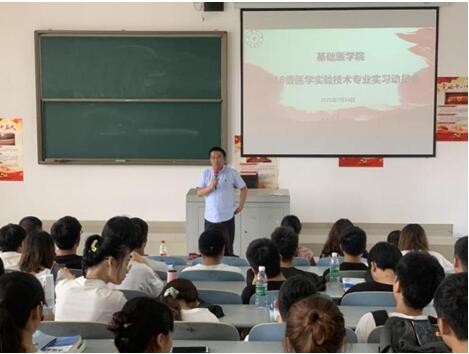 为了促进公司实习工作的顺利进行,使员工能顺利有效的进行实习,7月14日,太阳成tyc33455ccwww在九思楼4605教室举行2018级医学实验技术专业员工实习动员大会。公司党委书记王妤煜、经理禹文峰、党委副书记张贤、副经理张春林、副经理徐红、医学实验技术专业负责人吴宁、教学管理科相关老师及全体2018级医学实验技术同学参加,会议由辅导员刘旭主持。