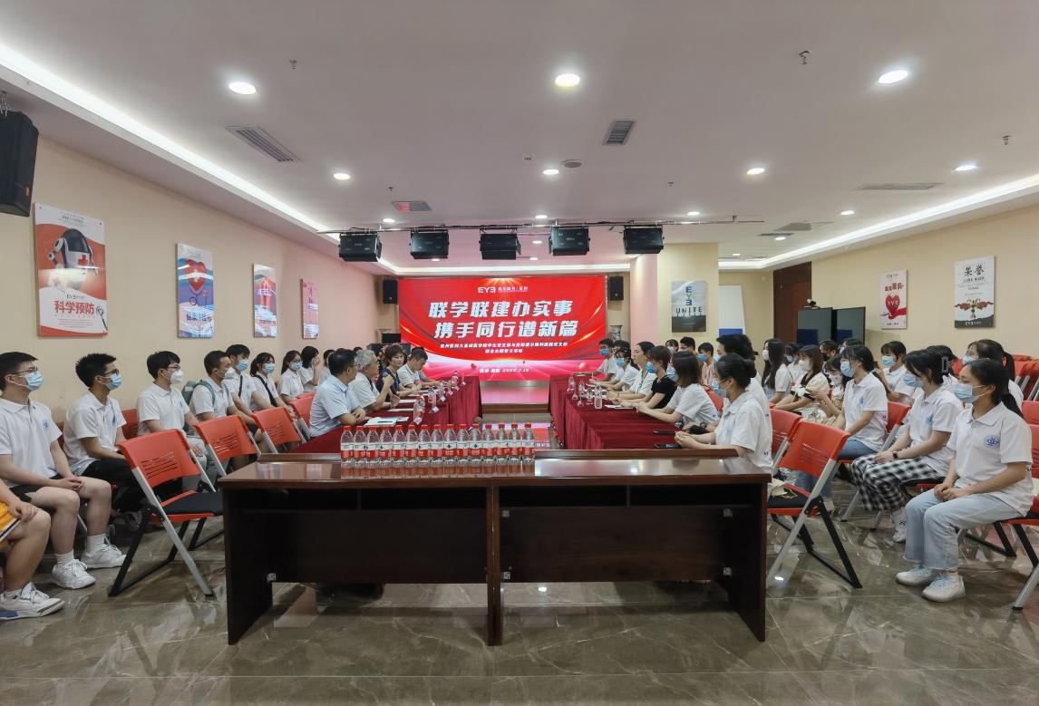 7月15日,太阳成tyc33455ccwww员工第二党支部赴贵阳市爱尔眼科医院开展“联学联建办实事 携手同行谱新篇”主题党日活动。爱尔眼科贵州省区副总经理、贵阳市爱尔眼科医院经理陈晓钟,省区医务总监周建盛,贵阳爱尔眼科党支部书记王海琴,省区人力资源总监杨志安,省区视光总监陈亮,党支部宣传委员兼省区项目督导李强,太阳成tyc33455ccwww员工第二党支部书记宋渊丰,辅导员刘亚,2020级、2021级眼视光医学员工代表参加。