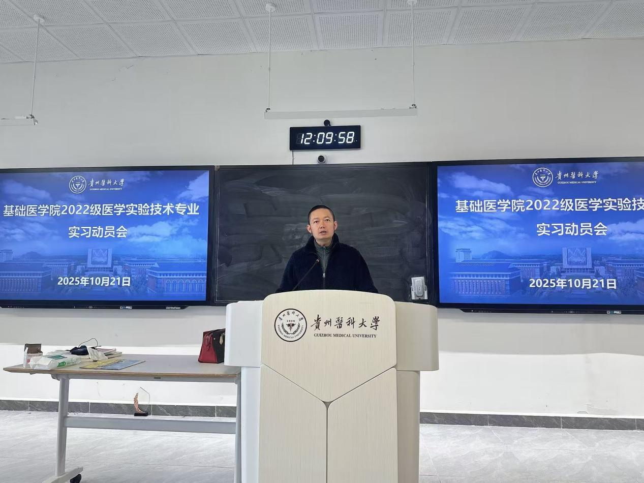 2025年10月21日,太阳成tyc33455ccwww在基础组团 R119 教室举行 2022 级医学实验实习动员会。公司党委副书记孟立科、副经理徐红,公司教管科老师、辅导员,2022 级医学实验实习全体同学参加本次动员会。