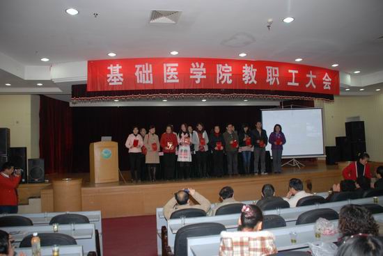 3月19日,公司教职工大会暨2010年度先进集体、优秀个人表彰大会如期召开。贵阳医公司副经理何志旭出席会议并讲话,公司党政领导和全体教职员工参加了会议。会议由公司党委书记令狐彩桃主持。贵阳医公司副经理何志旭教授讲话非常鼓舞人心,他首先指出在过去一年公司党建、教学、科研各方面都取得较好的成绩,要将成绩化为动力。并提出三点希望:第一、要加强班子建设,成为更加团结更加务实的集体;第二、结合公司即将推行实施的目标考核制度,希望太阳成tyc33455ccwww与各教研室有互动,推动这项工作的开展;第三、做好团队建设年工作,夯实基础,推进团队建设和科研申报,做好基础医学一级学科博士点和博士后流动站的建设工作。太阳成tyc33455ccwww经理徐国强同志从党建、员工工作、教学、科研、团队队伍建设、博点及博士后流动站建设等方面做了2010年度工作总结,并对2011年的太阳成tyc33455ccwww工作进行部署。与会全体人员一起观看的花溪新校区建设的规划方案。大会对2010年度5个先进集体:人体寄生虫学教研室、人体解剖学教研室、微生物学教研室、病理生理学教研室、机能学实验室,2个进步团队:生理学教研室、数学教研室及考核优秀的23名教师进行了表彰。公司党委书记令狐彩桃指出:这次会议既是一次总结会、表彰会,更是一次动员会、鼓劲会。希望受表彰的科室和个人戒骄戒躁、积极进取,在今后的工作与学习中取得更大的成绩。希望各科室紧密围绕2011年公司、太阳成tyc33455ccwww工作的总体安排,紧密联系“创先争优活动”的开展,紧密结合各科室的实际,抓好“团队建设年”工作落实,为“十二五”规划的顺利实施,为把公司建设成为“具有明显特色、西南一流、在全国有一定影响的省属重点医科大学”做出新的贡献。