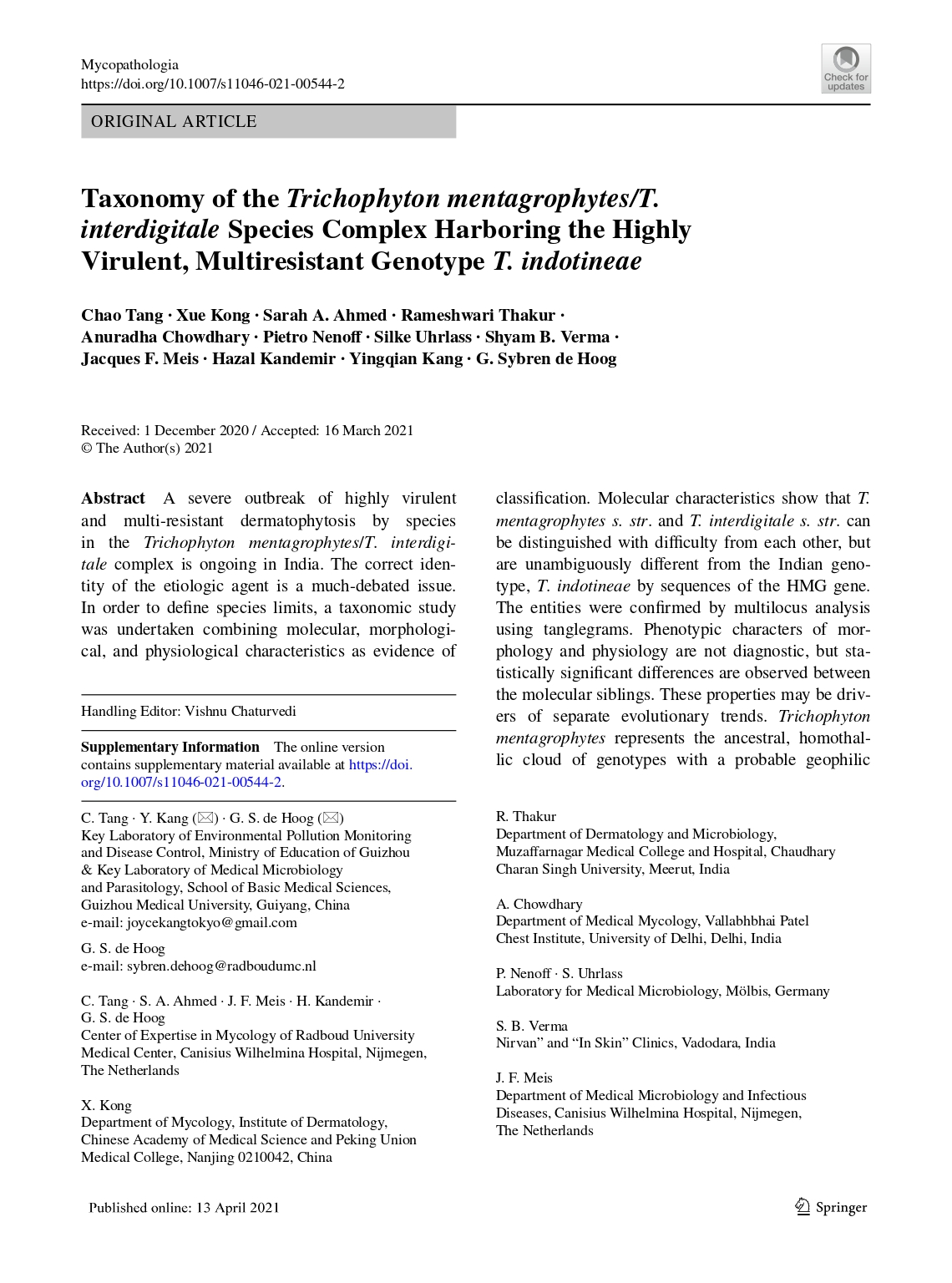 附件【6 Mycopathologia Taxonomy of the Trichophyton mentagrophytes.pdf】已下载次
