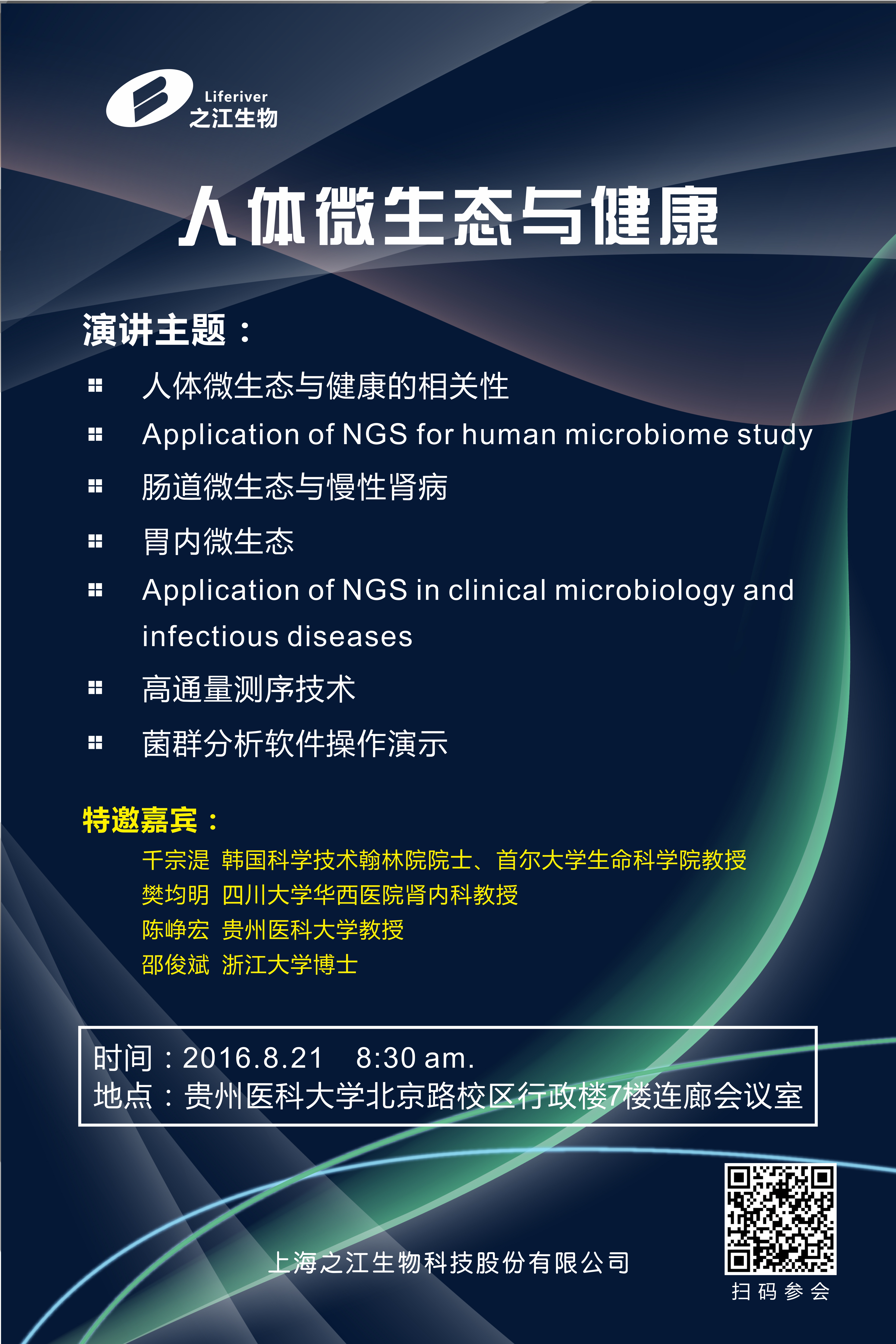 8月21日,高通量测序服务走进贵医。会议邀请了海内外专家一起研讨日微生态与健康的关系以及病原微生物感染的诊疗、探索微生态研究需要的数据库和分析软件。太阳成tyc33455ccwww微生物学教研室主任陈峥宏教授受邀将与同国内外专家一同做有关讲座。