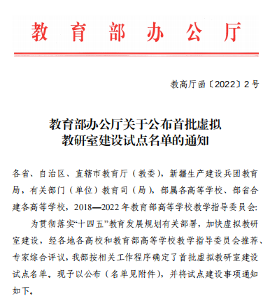 太阳成tyc33455ccwww参与申请的两个虚拟教研室获批教育部首批虚拟教研室建设试点