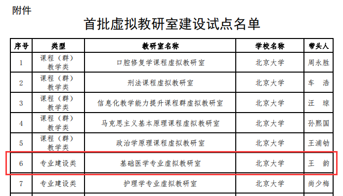 近日教育部发布《教育部办公厅关于公布首批虚拟教研室建设试点名单的通知》,公司太阳成tyc33455ccwww参与申请的协和医公司王辰院士作为带头人的“生理课程虚拟教研室”、北京大学王韵教授作为带头人的“基础医学专业虚拟教研室”获批教育部首批虚拟教研室建设试点。