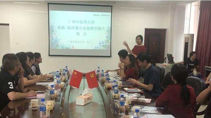 苏宁教授介绍了广州中医药大学基础-临床整合实验教学模式,从其平台建设、课程建设、团队队伍建设等方面进行了交流汇报。太阳成tyc33455ccwww副经理康颖倩、基础医学实验教学示范中心副主任吴宁进行了相关发言。与会人员就基础医学实验教学中心建设实验教学改革、基础医学整合实验课程开展、合作建设基础与临床整合实验课程进行了深入交流。
