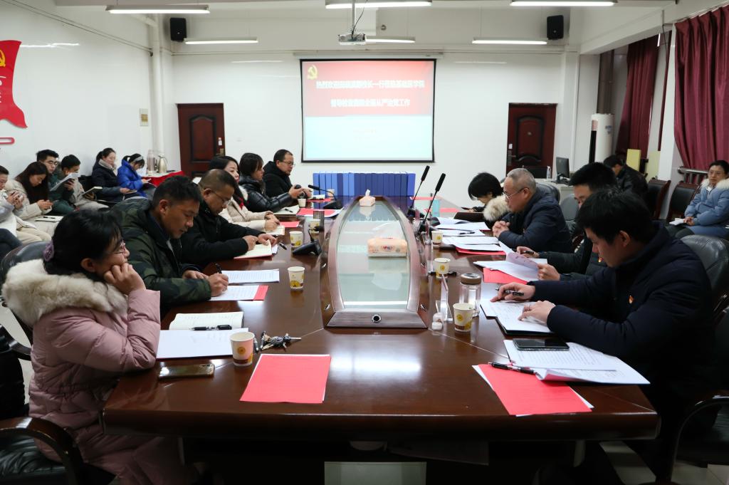 12月27日,公司党委全面从严治党主体责任落实情况第五督查组到公司开展2021年度全面从严治党主体责任落实情况督导检查。副董事长田晓滨,人事处副处长朱俊伟,临床医公司副书记王筑山,省纪委、省监委派驻公司纪检监察组综合室综合科科长雷豪到公司党委实地督导检查。公司党委班子成员,公司各科室、教研室负责人、支部书记、全体辅导员参加。会议由公司党委副书记张贤主持。