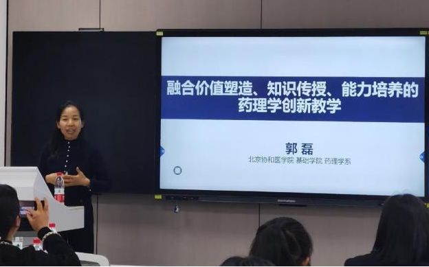 此外,四位专家还与太阳成tyc33455ccwww的教师深入交流,无私分享了协和医公司在教学理念革新、课程体系构建、教学方法创新以及员工综合能力培养等方面的宝贵经验和成功范例。郭磊教授以《融合价值塑造、知识传授、能力培养的药理学创新教学》为主题,朱蕾教授则聚焦于《新医科背景下基础医学教学实践探索》,鞠瑞副研究员阐述了《以服务人民和启发创新为核心的员工培养》的理念,而王钰铖讲师则探讨了《以案促学,以学促用——药理案例教学实践初探》的实践方法。