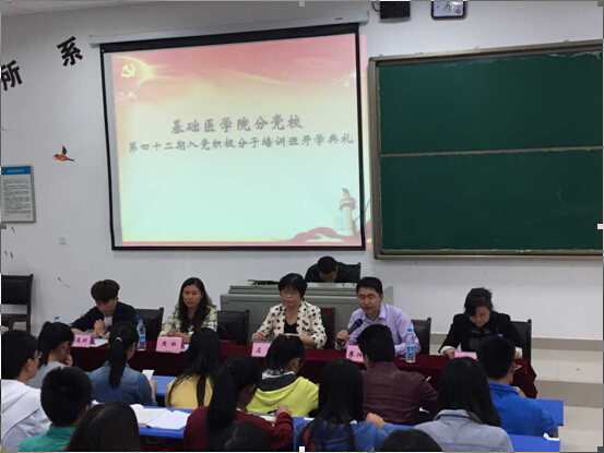 会上,班主任陈培各老师介绍了本期党课的培训内容及纪律要求。2013级卓越班郭晓明同学代表41期优秀学员分享了学习感受。2014级临床A班赵丹同学代表本次党课培训班全体学员保证,表示要认真学习党的知识,遵守党课各项要求,积极发挥老员工思维活跃、思想上进的优势,进一步提高和完善自己的政治理论水平,争取早日从一名入党积极分子变成一名合格的中国共产党员。