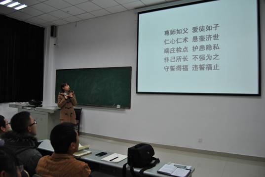 为进一步促进2013级卓越医师班员工对临床专业的深入了解,尽早明确今后努力的方向与目标,增强卓越医师班员工学医的坚定信念,医员工物工程系团委副书记杨晖老师应卓越班深情相邀,于20131115日下午4:304308教室,给卓越班全体同学进行了以“进入临床,你准备好了吗?——考研推免 规陪 执照”的主题讲座,讲座由卓越班班主任董然然主持。